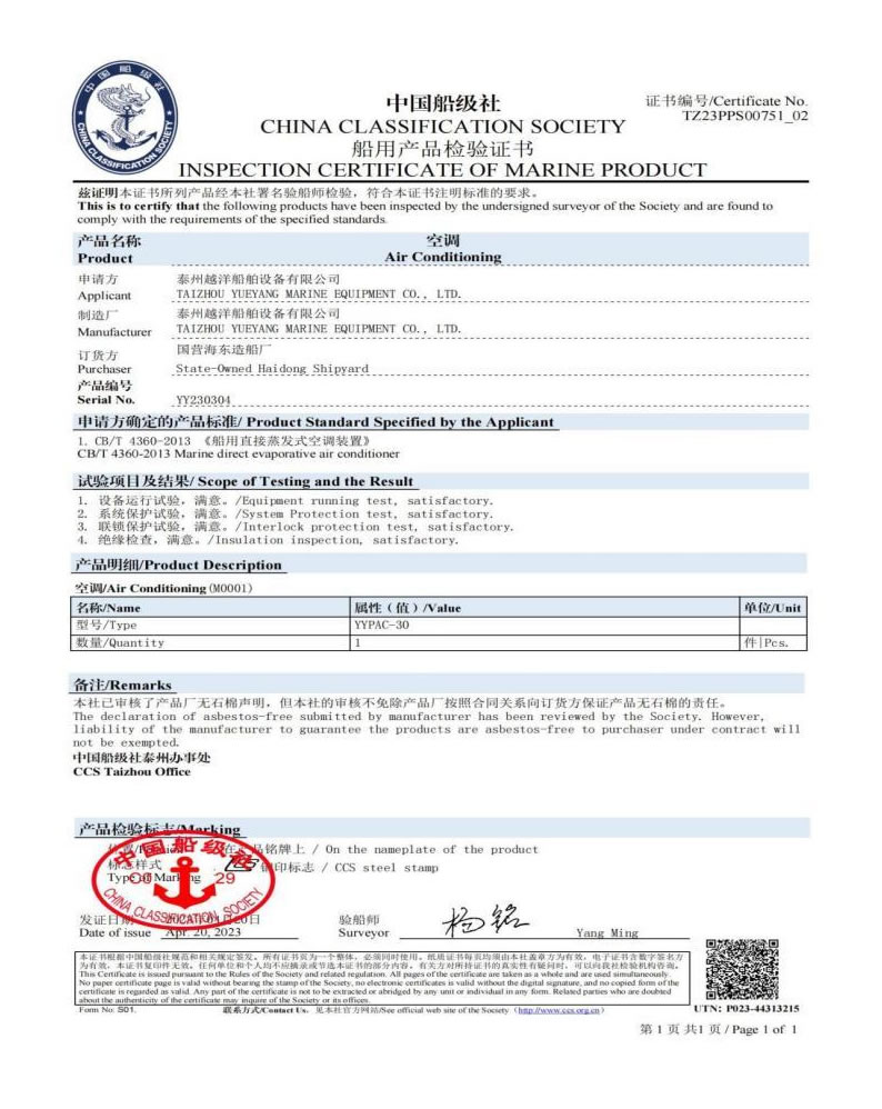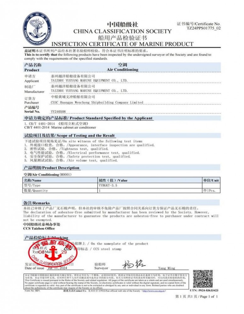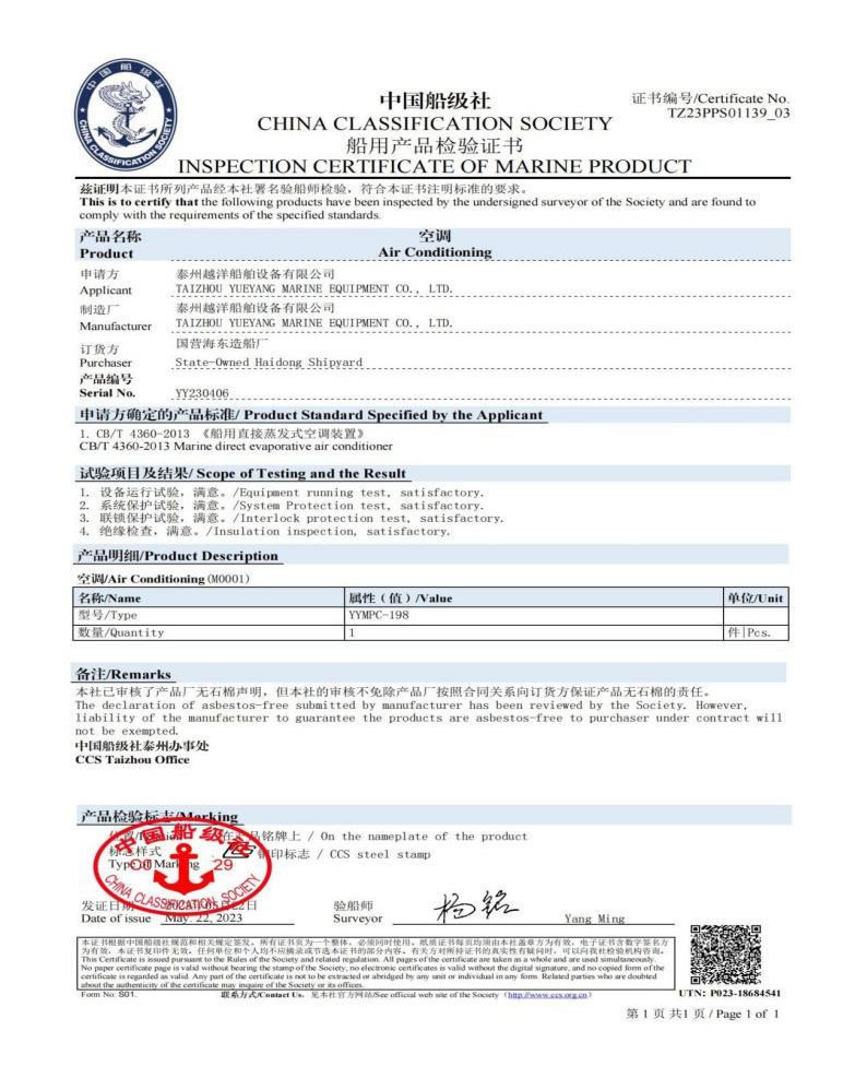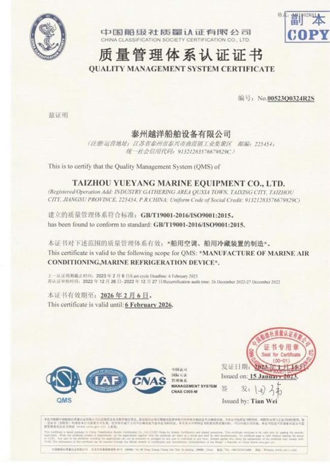 泰州越洋船舶設(shè)備有限公司多年專業(yè)從事艦船用空調(diào)、冷藏、冷凍設(shè)備、冷庫系統(tǒng),通風(fēng)安裝系統(tǒng)(空調(diào)通風(fēng),機艙通風(fēng),自然通風(fēng))等。本公司地處美麗的曲霞鎮(zhèn)工業(yè)園區(qū),固定資產(chǎn)1200萬人民幣,占地面積1.5萬平方米左右,公司產(chǎn)品廣泛用于海軍驅(qū)逐艦護衛(wèi)艦,補給艦,海警,醫(yī)療船,科考船等,如:“東方紅2“,“海大號”,“向陽紅06”,“向陽紅09”,“向陽紅03”,“大洋1號”,“東方紅3”,“向陽紅18”,“向陽紅52”,地質(zhì)級科考船“業(yè)冶錚”號海洋平臺。